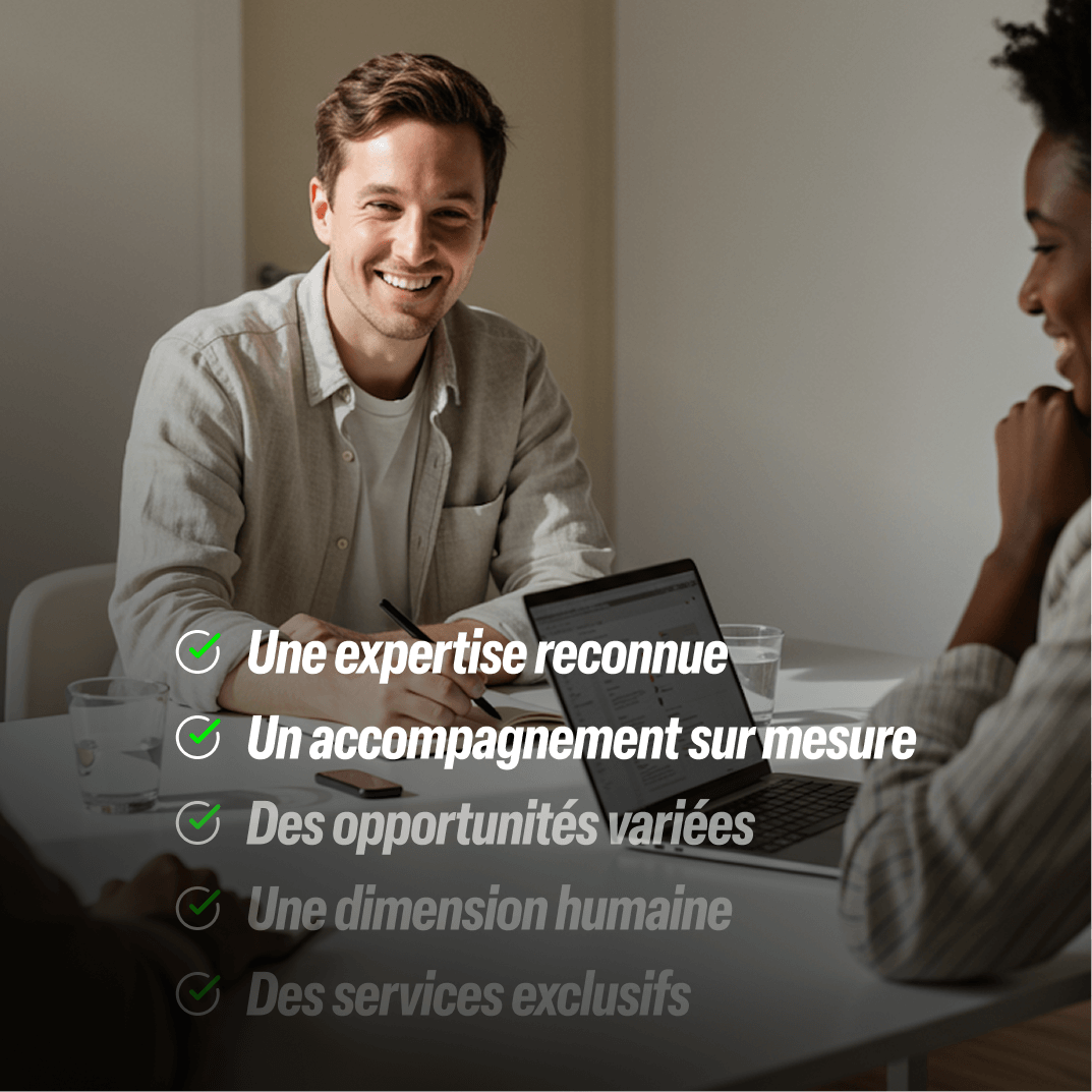 Derrière chaque mission ou recrutement, il y a une équipe de passionnés qui suivent votre parcours, vous conseillent et vous accompagnent dans vos choix.