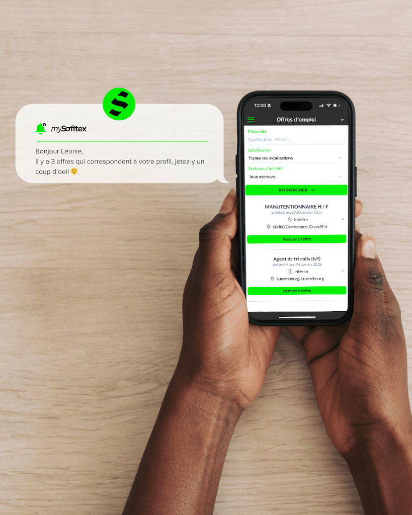 Téléchargez notre application MySofitex et postulez en un clic à nos offres d’emploi, simplement et rapidement.